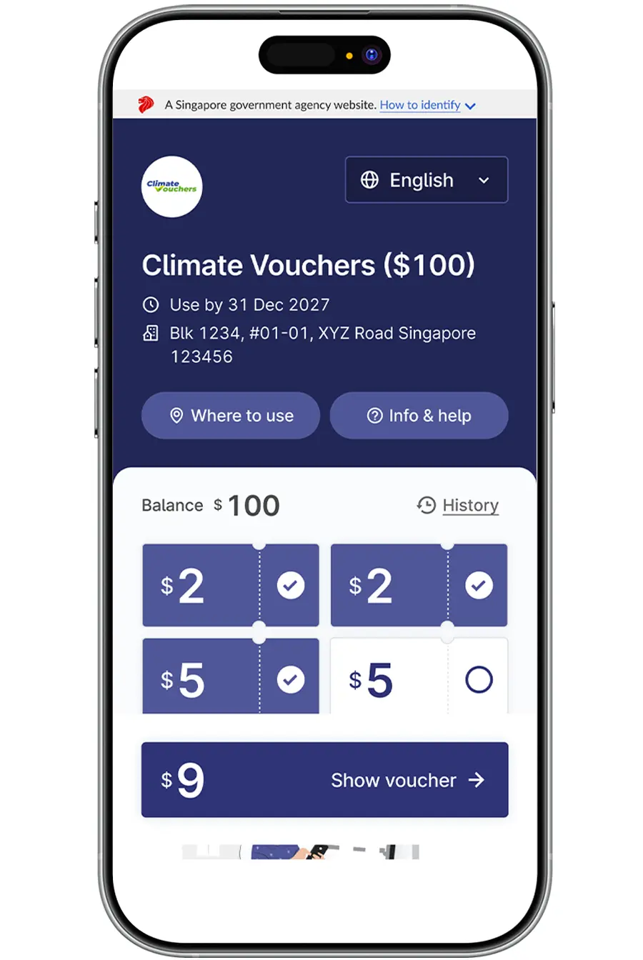 Show your voucher QR code from Singpass. - Voucher Will Be Scanned and Deducted Immediately